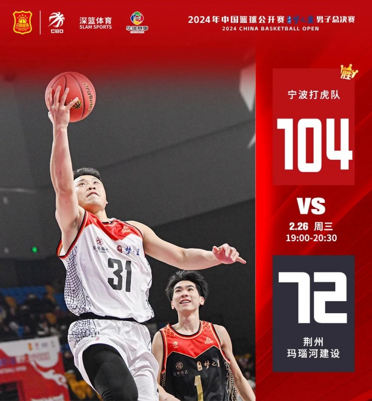 上半場,寧波打虎一上來就展現出了強大的進攻實力,以6-0開局。荊州瑪瑙河建設通過外線打開局勢,緊咬比分。半場結束,寧波打虎43-41荊州瑪瑙河建設。下半場,隨著體力的下降,荊州瑪瑙河建設手感欠佳,反觀寧波打虎體能依舊充沛,98號王宇牢牢掌控籃下,13號李琳、4號江楠越打越順,最終寧波打虎104-72戰勝荊州瑪瑙河建設。