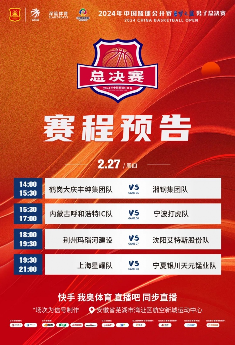 2月26日,2024年中國籃球公開賽洋河夢之藍男子總決賽在安徽省蕪湖市灣沚區航空新城運動中心打響。在首輪四場比賽中,艾特斯股份、寧夏天元錳業、寧波打虎、湘鋼集團取得勝利。