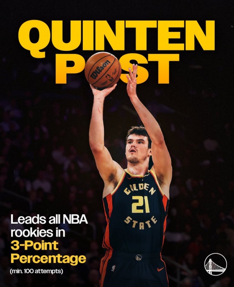 據統計,波斯特本賽季的三分命中率排在本屆新秀(至少出手100次以上)第一名。