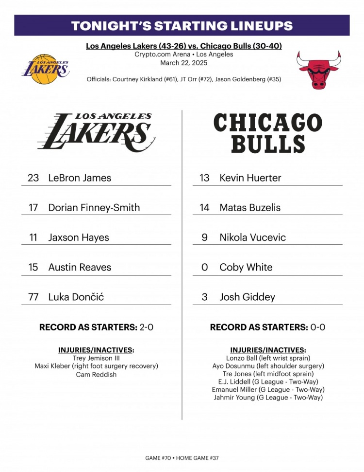 此役,詹姆斯與八村塁復出,東契奇、里夫斯、范德彪、電風扇、文森特等人均可出戰。