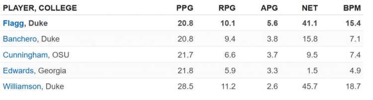 雖然即戰力和發展潛力是不同的維度,但弗拉格在大學賽場的統治表現同時通過了數據驗證與球探肉眼觀察的雙重檢驗,尤其是當將他與NBA球星進行類比時。