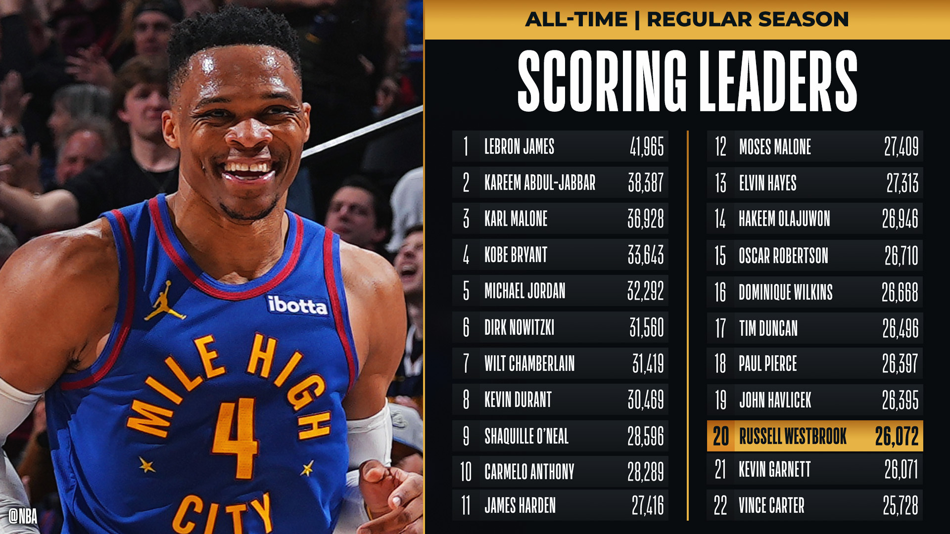 威少今日姍姍來遲,得分正式進(jìn)入歷史前20!這樣一來,雷霆三少得分全部進(jìn)入歷史前20!