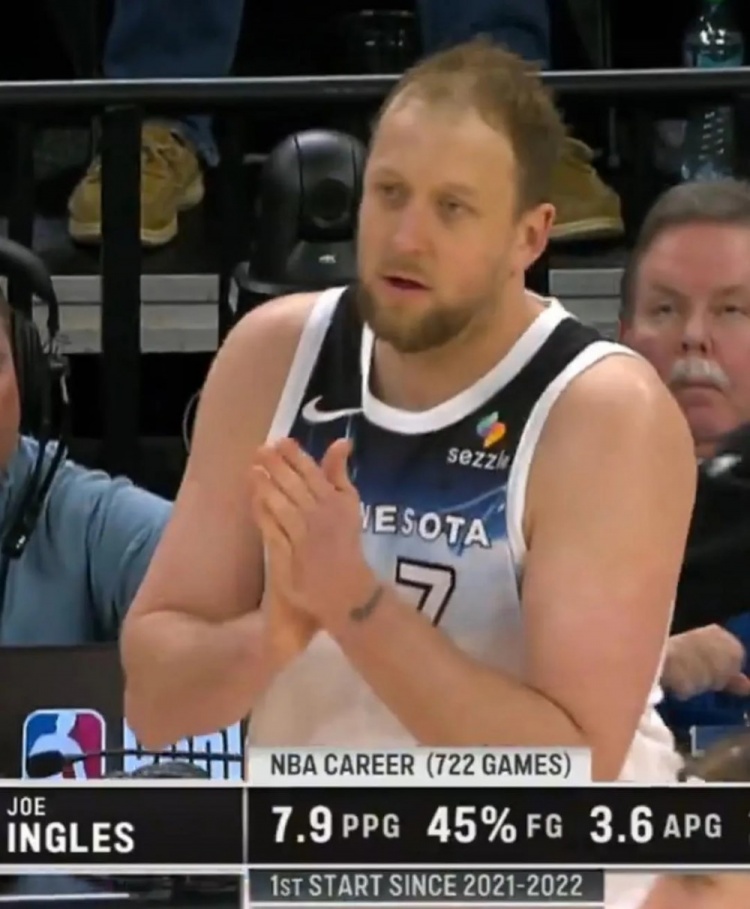 英格爾斯的表現并不算很出色,在6分鐘內他3投0中,沒有得分,只有1次助攻。但沒有人會苛責他,恰恰相反,一度因為2連敗而士氣低迷的隊友們,在他的感召下重燃斗志。他下場的時候比分是14:13,之后他沒有再次上場,森林狼最終狂勝鵜鶘41分。