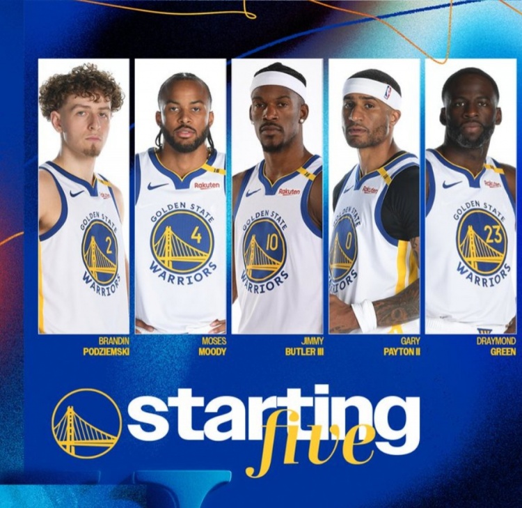 勇士首發:波杰姆斯基、穆迪、小加里-佩頓、巴特勒、追夢格林。