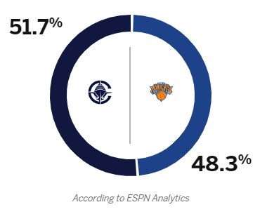 ESPN給出了本場比賽勝率預測,其中快船51.7%,尼克斯48.3%。