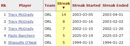 而這是他連續(xù)第5場(chǎng)比賽砍下30+,為自2003年麥迪后首位連續(xù)5場(chǎng)30+的魔術(shù)球員。