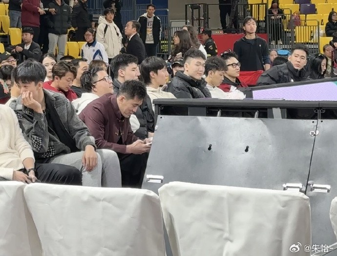 此前眼部受傷的郭艾倫、沒有通過體測的丁彥雨航也一同出現(xiàn)了在場邊觀戰(zhàn)。