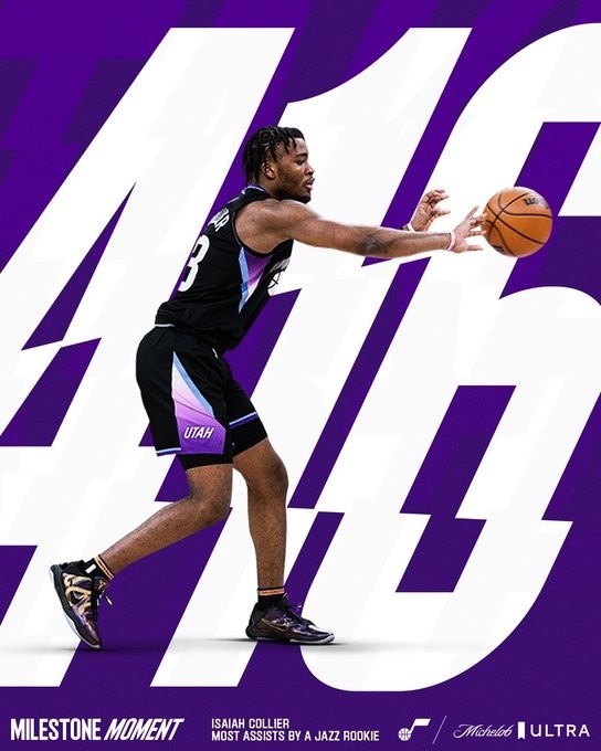 第三節科利爾送出新秀賽季第416次助攻,打破了斯托克頓保持了40年的爵士新秀單賽季助攻紀錄(415)次。