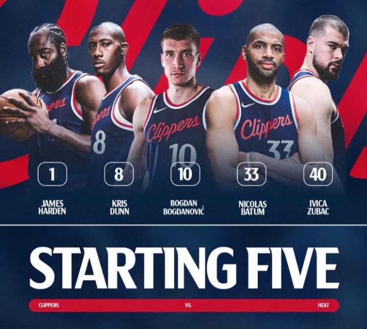 小卡輪休!快船首發:哈登、鄧恩、博格丹、巴圖姆、祖巴茨