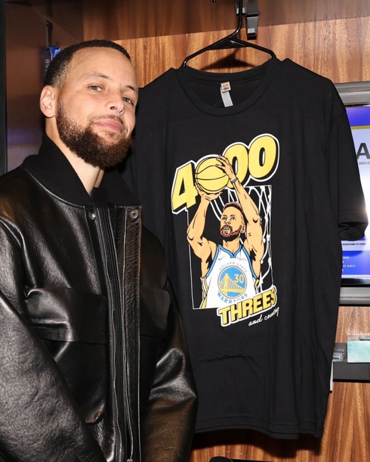 帥滴!官方曬出庫里賽后穿皮衣與4000三分T恤合照:Mr.4K