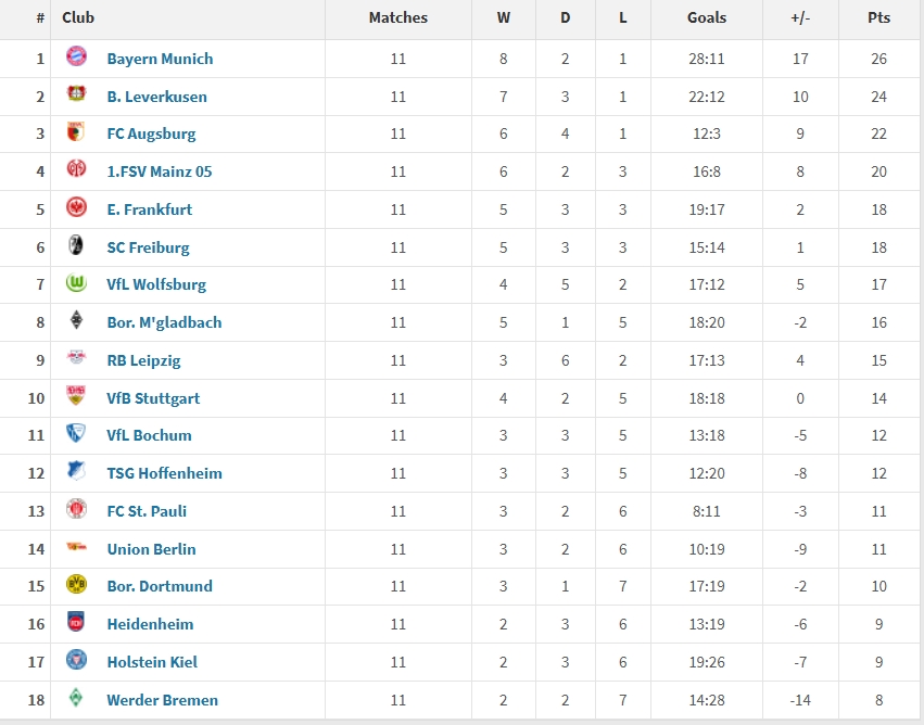標簽: 足球德甲拜仁慕尼黑多特蒙德RB萊比錫勒沃庫森門興沃爾夫斯堡奧格斯堡美因茨霍芬海姆法蘭克福弗賴堡斯圖加特波鴻不萊梅海登海姆圣保利荷爾斯泰因基爾柏林聯合