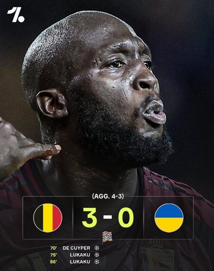 歐國聯(lián)升級賽次回合比利時3-0擊敗烏克蘭,盧卡庫梅開二度