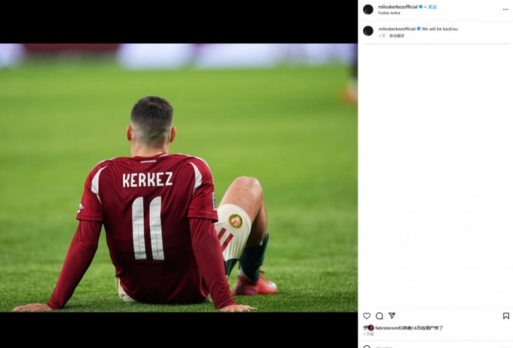 匈牙利本次國際比賽日兩戰(zhàn)皆墨,兩回合1-6輸給了土耳其,科爾克茲曬出自己的照片,并寫道:“我們會回來的!”