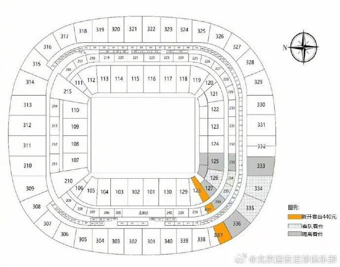 親愛的球迷朋友們大家好,鑒于本輪中超聯(lián)賽北京國安vs成都蓉城場次門票已售罄,為了最大限度的滿足球迷購票需求,經(jīng)北京國安足球俱樂部與北京賽區(qū)委員會(huì)協(xié)商,現(xiàn)增開工人體育場128區(qū)、237區(qū)、337區(qū)的共計(jì)636個(gè)座位作為散票公開對(duì)外銷售,票價(jià)為440元。