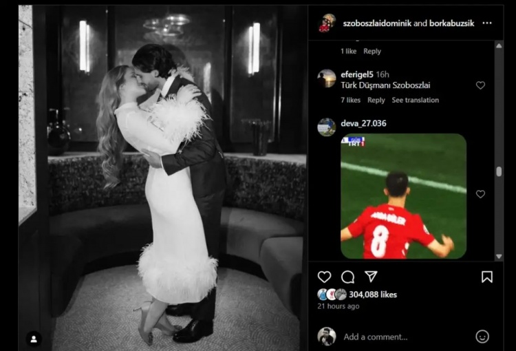 現在這種行為還未結束,索博昨天曬出自己的結婚照,評論區仍然有很多球迷在刷居勒爾的照片,不少支持索博的球迷則表示:“土耳其愛哭鬼又來了。”