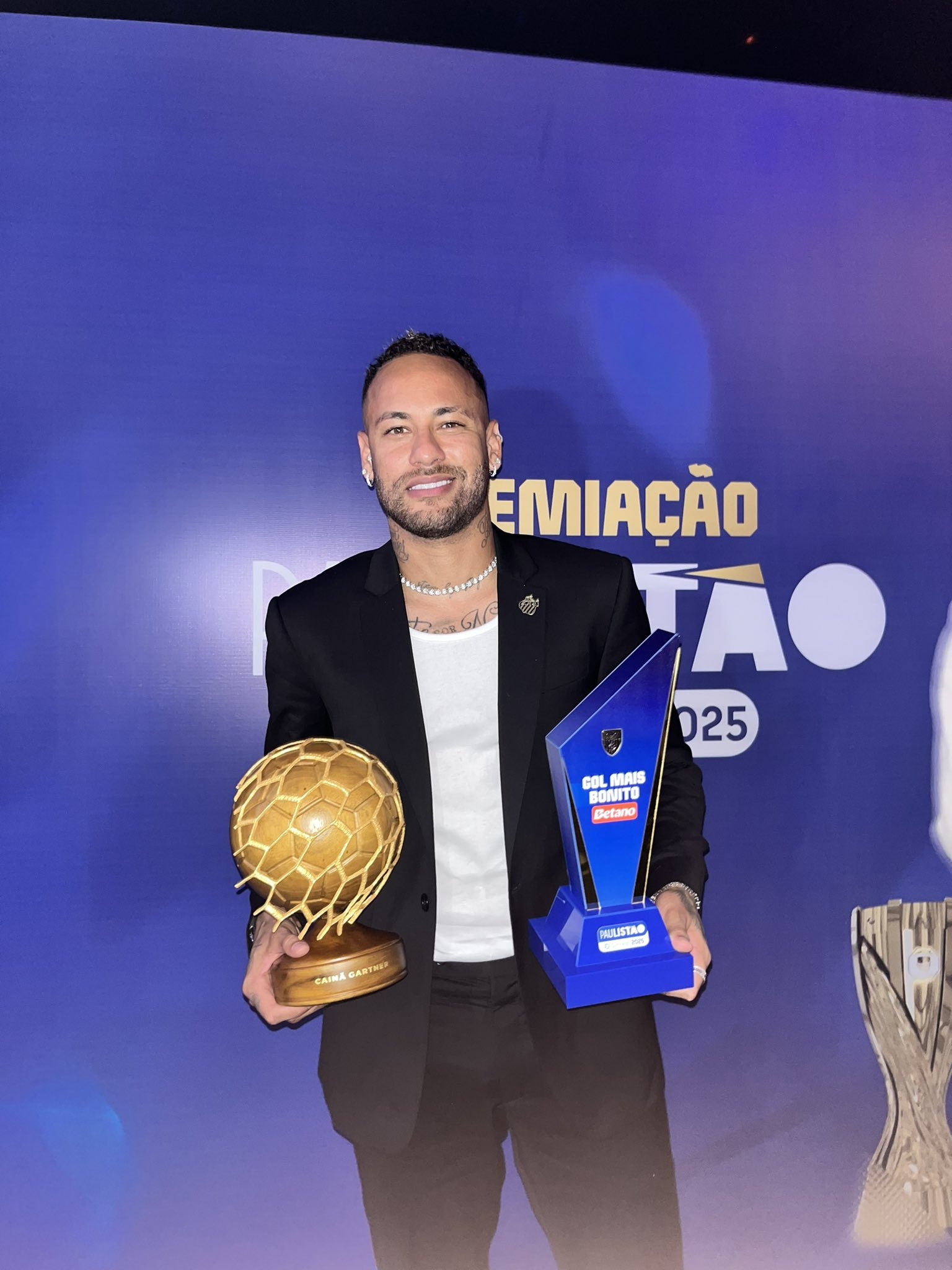 3月29日訊 內馬爾日前出席圣保羅州聯賽頒獎典禮,他對國際里梅拉的角球直接破門獲得了最佳進球。
