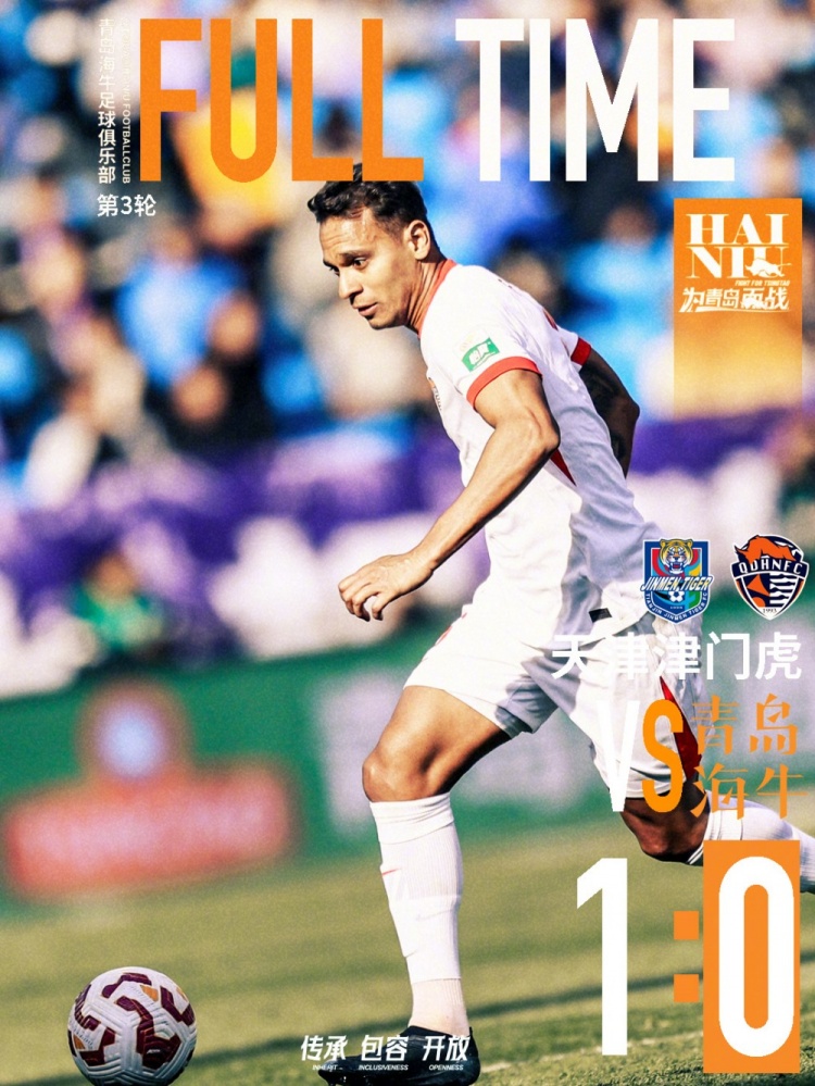 全場比賽結(jié)束,青島海牛客場0-1不敵天津津門虎。