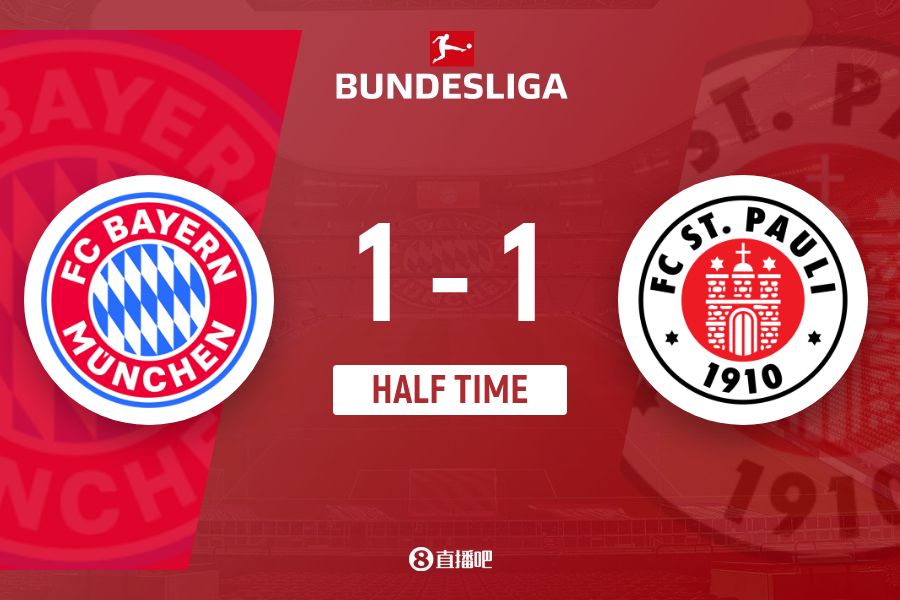 上半場傷停補時3分鐘,半場結束,拜仁暫1-1圣保利。