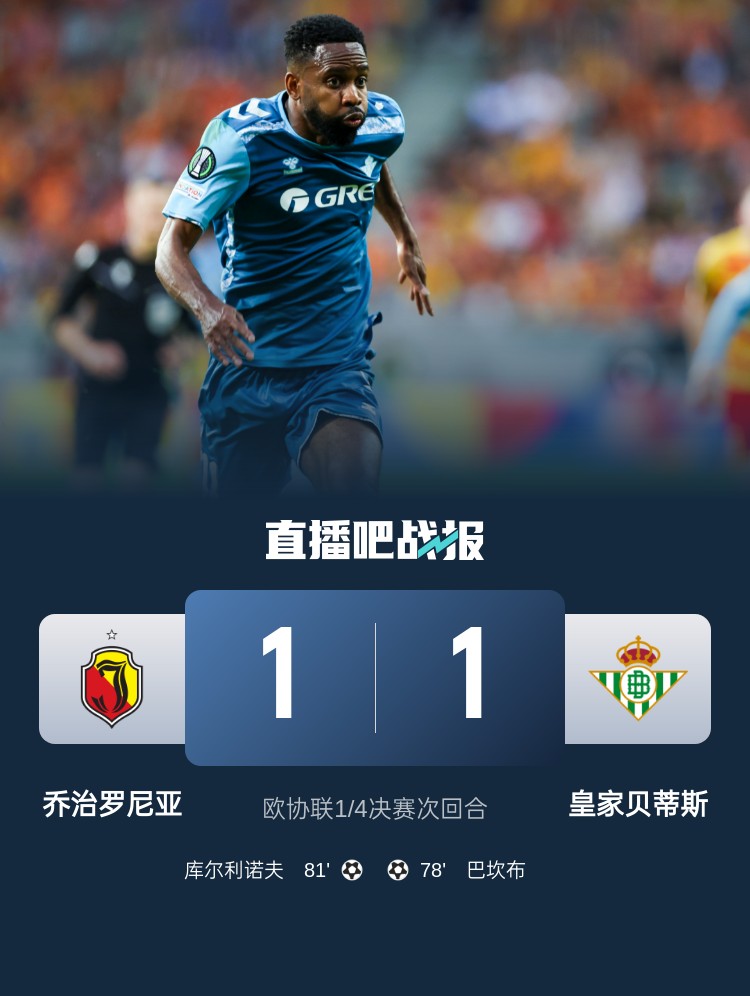 巴坎布破門,貝蒂斯1-1戰平喬治羅尼亞,兩回合總比分3-1淘汰對手!半決賽將迎戰佛羅倫薩。